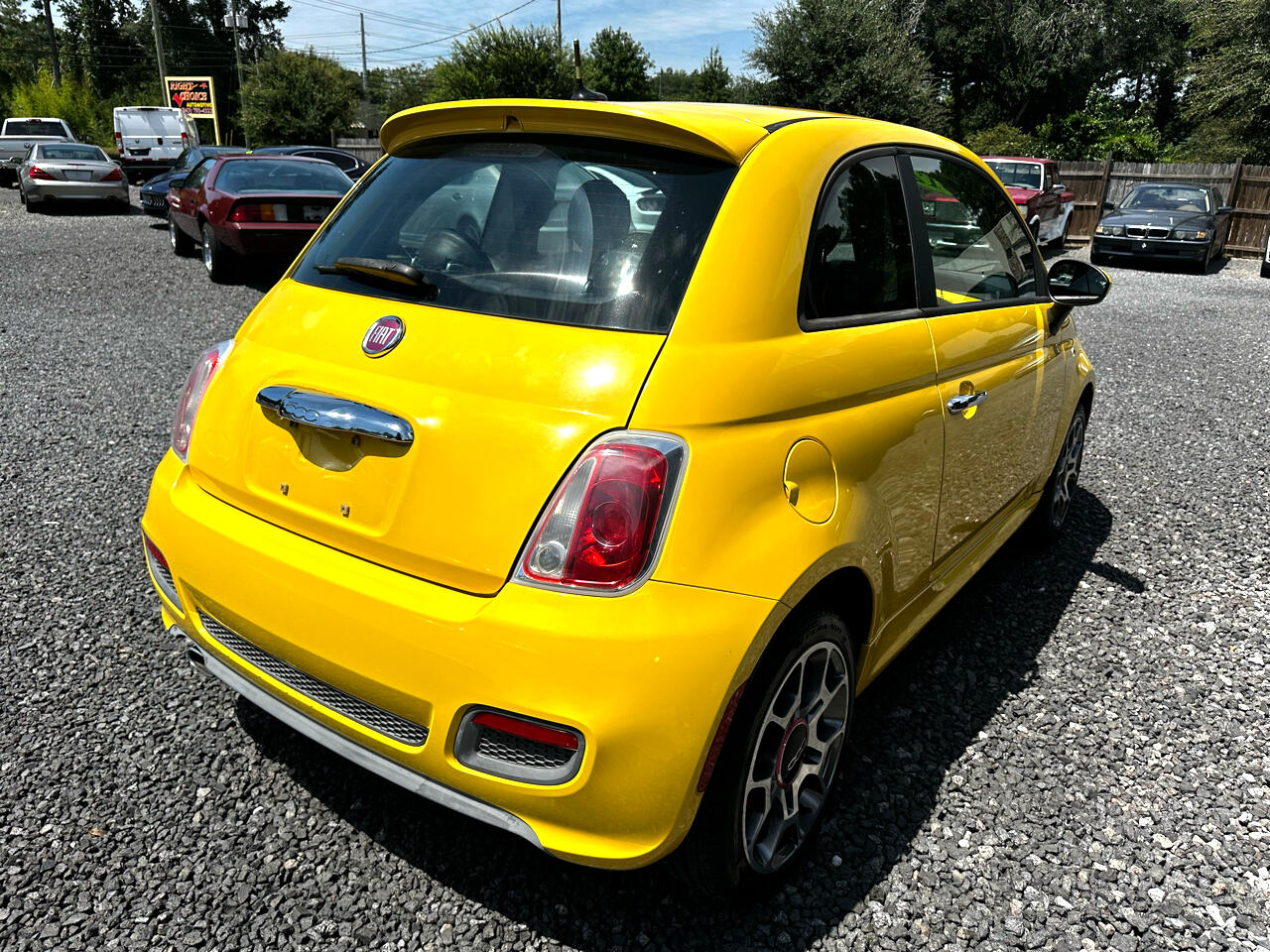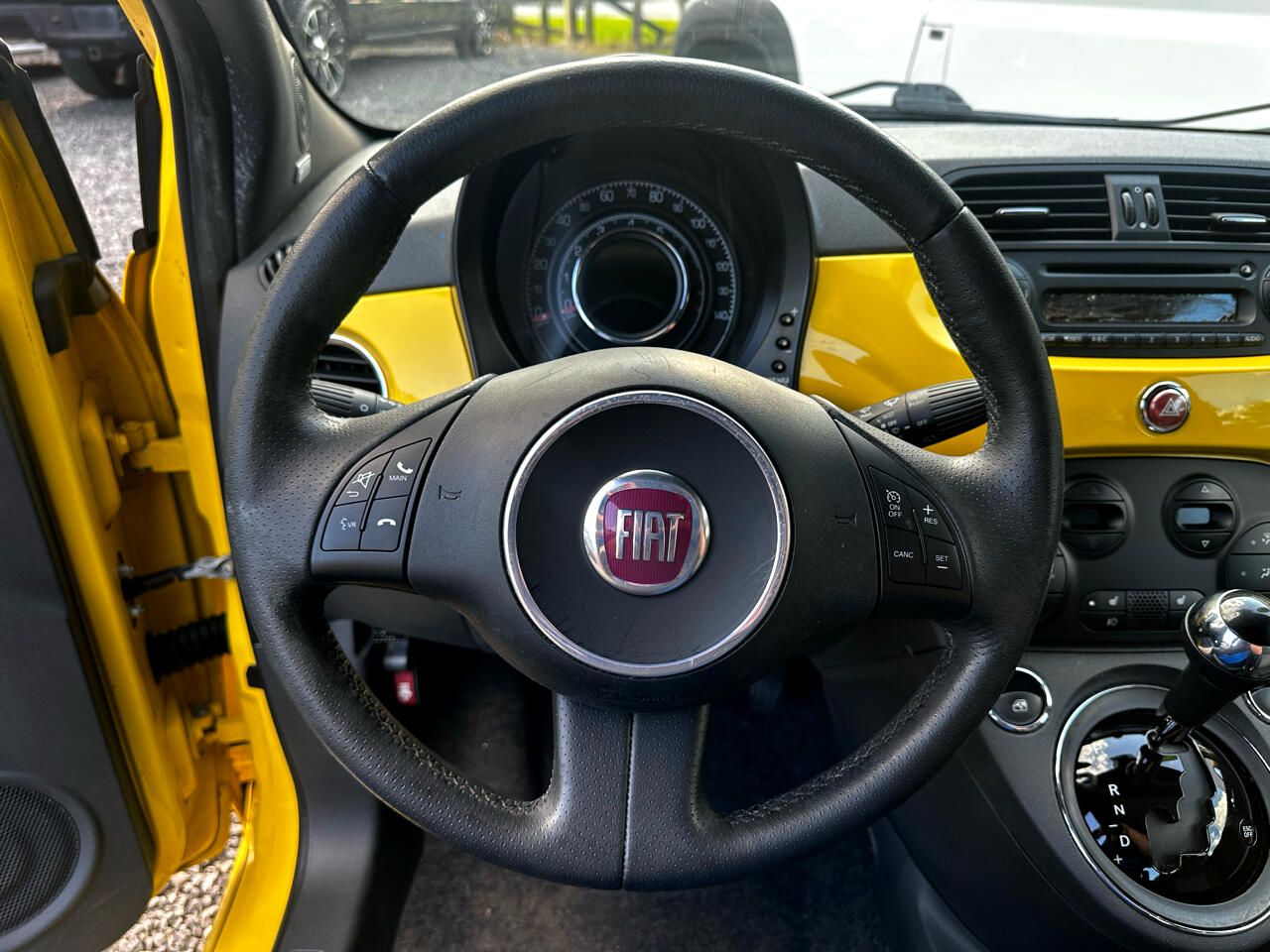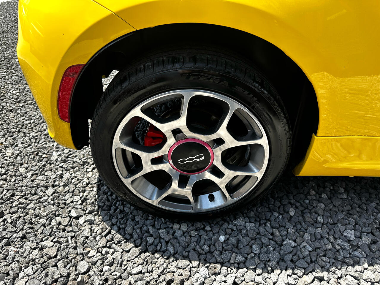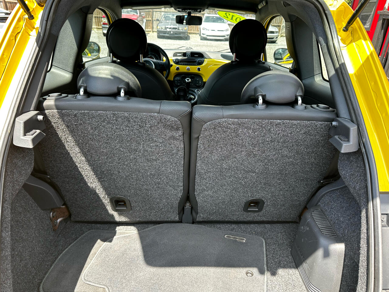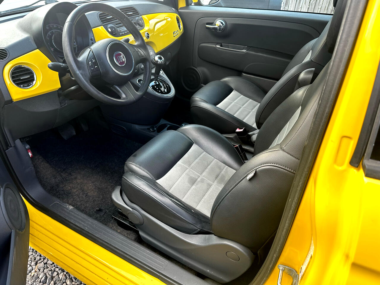 Cruise around town in style with this vibrant Yellow 2012 Fiat 500! This compact car is sure to turn heads with its sleek design and sporty details, like the red brake calipers and rear spoiler. The 16" aluminum wheels add a touch of sophistication, while the fog lamps and halogen headlamps ensure visibility on the road ahead.