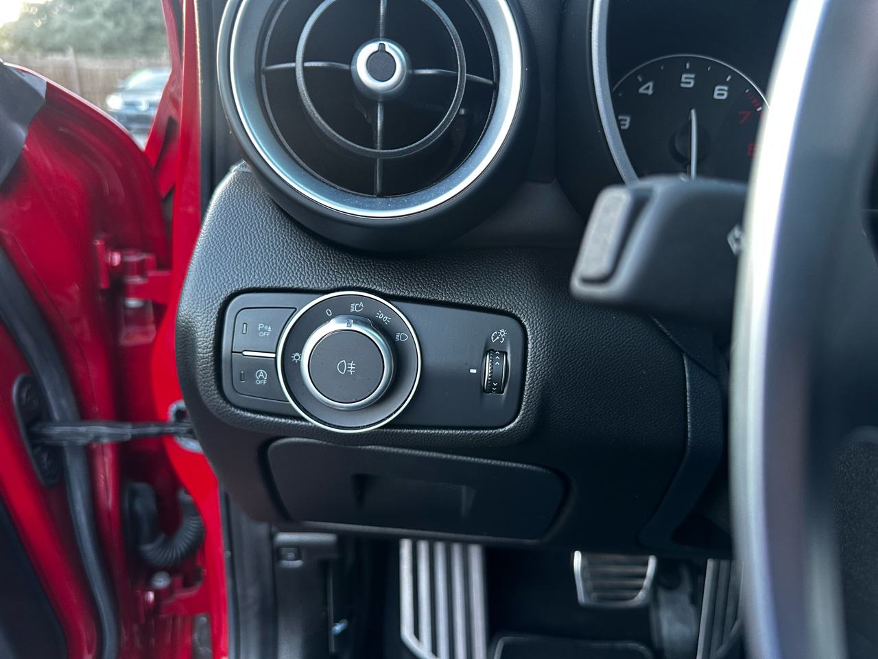 Buckle up and prepare to experience the thrill of the road in this fiery Red 2019 Alfa Romeo Giulia! Powered by a roaring 2.9L 505HP V6 Twin-Turbo engine, this beauty is ready to unleash its full potential on the pavement. With rear-wheel drive and a sport-tuned suspension, every twist and turn will feel like a race track adventure.