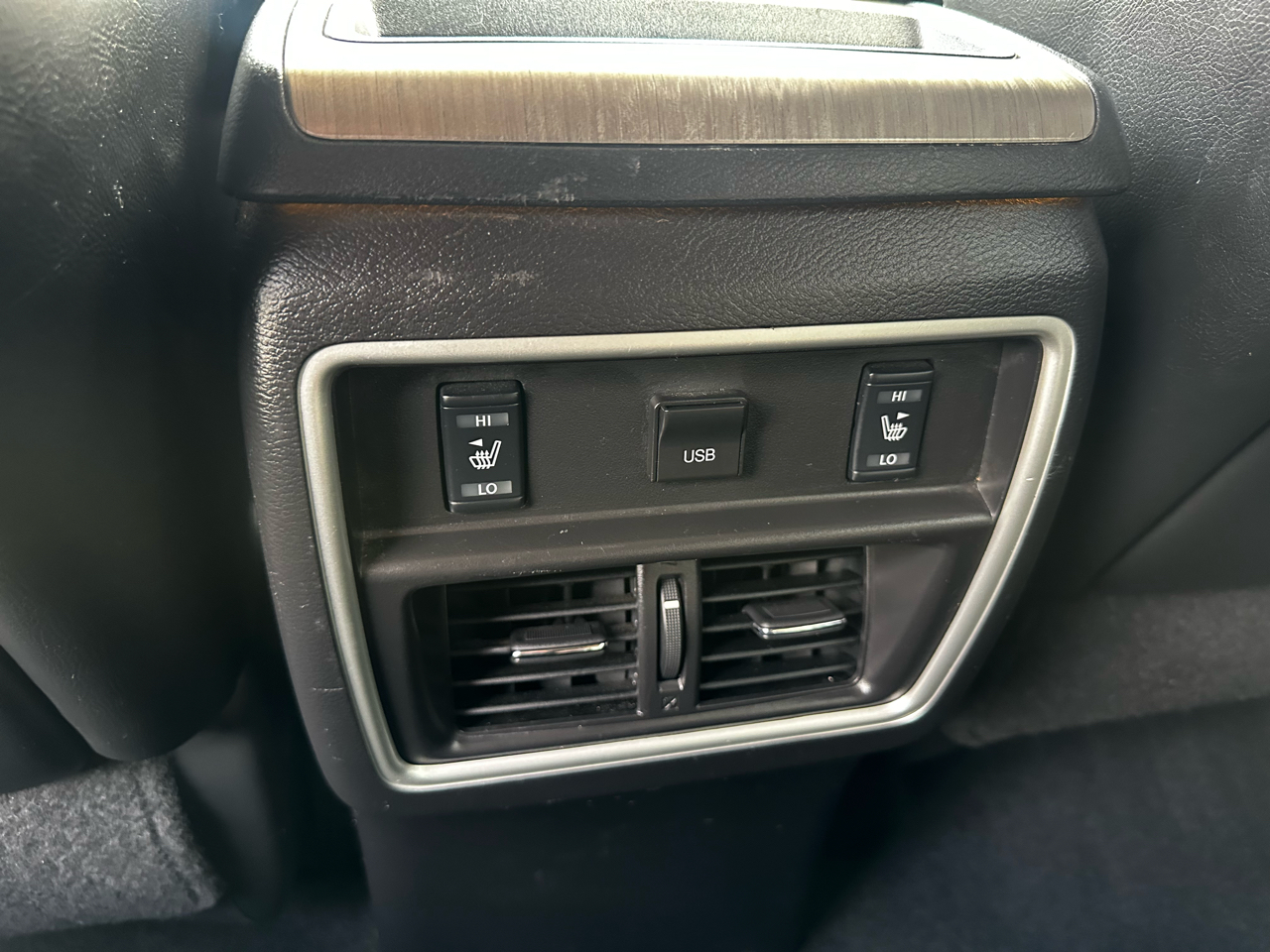 Inside, the leather interior is sleek and comfortable, with heated seats and a leather-wrapped steering wheel. The dual-zone automatic air conditioning ensures a comfortable ride for all passengers. Stay connected with the 11-speaker sound system and 2 LCD monitors for all your entertainment needs.